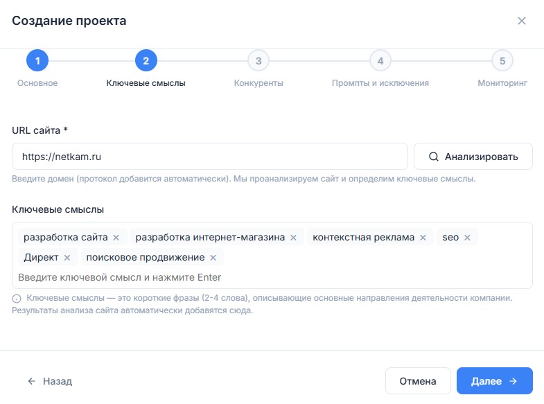 Мы не только прорабатываем стратегию и внедряем GEO продвижение вручную, опираясь на собственное решение. Наш сервис автоматизирует все ключевые этапы: от аудита бренда и анализа генеративной выдачи до подготовки контента, настройки локального присутствия